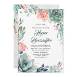 Succulent Greenery Pink Floral Modern Wedding Invitation